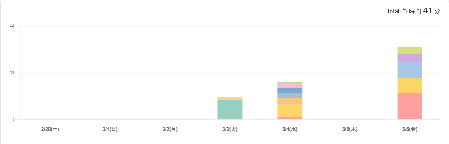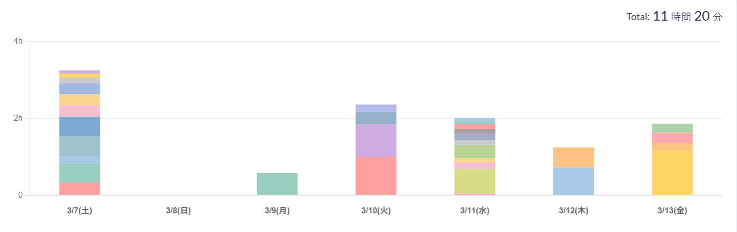 学習時間が【5時間41分 → 11時間20分】へ増加。